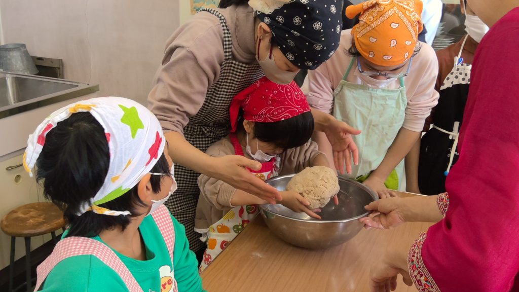 ネパールの家庭で食べる「チャパティ」というパンを作りました。粉と油と塩と水をよく混ぜて