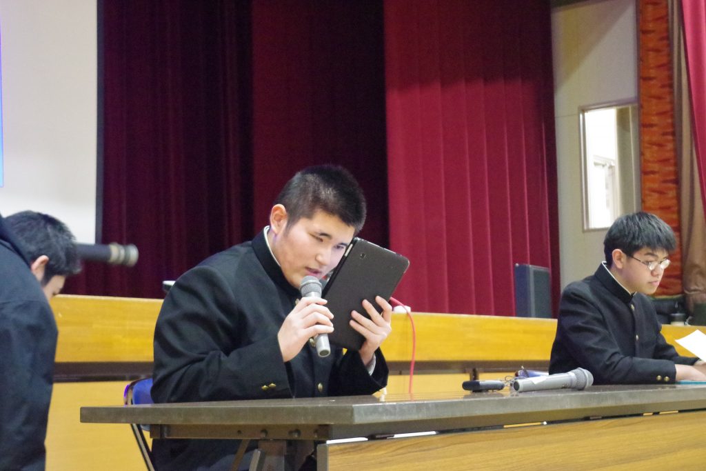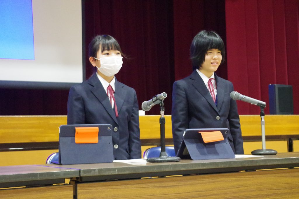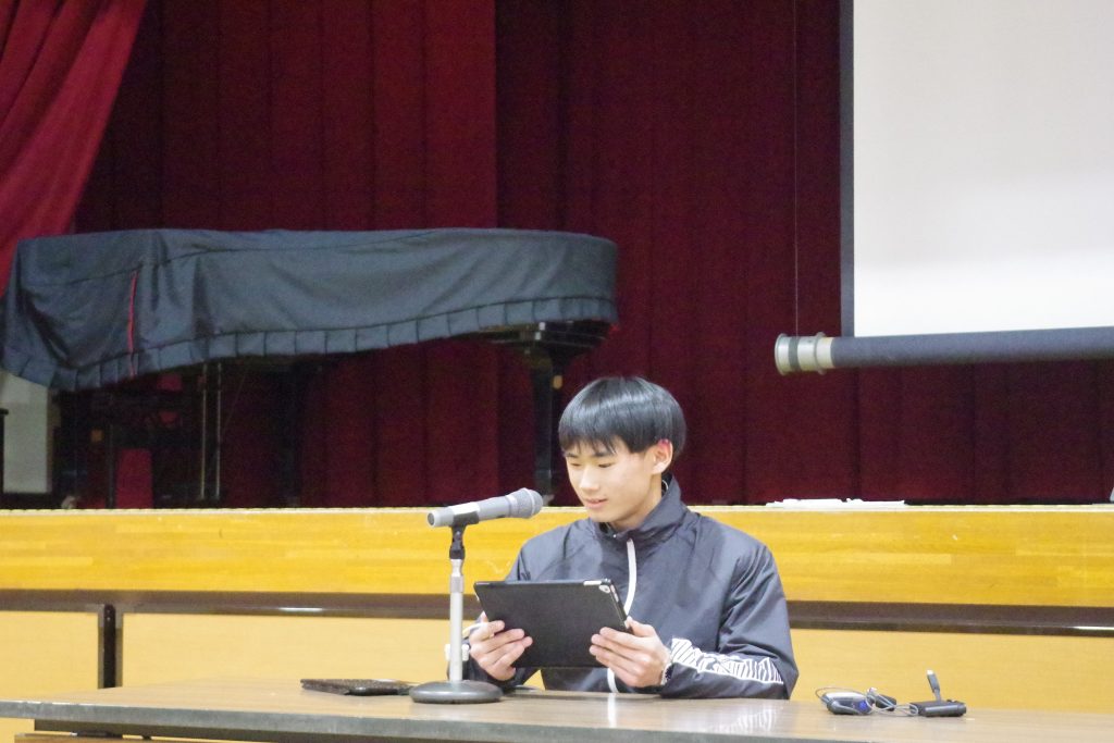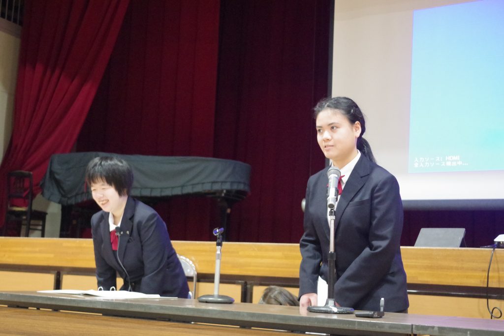 6年生が、選挙管理委員です。司会の二人が、候補者を呼びます。