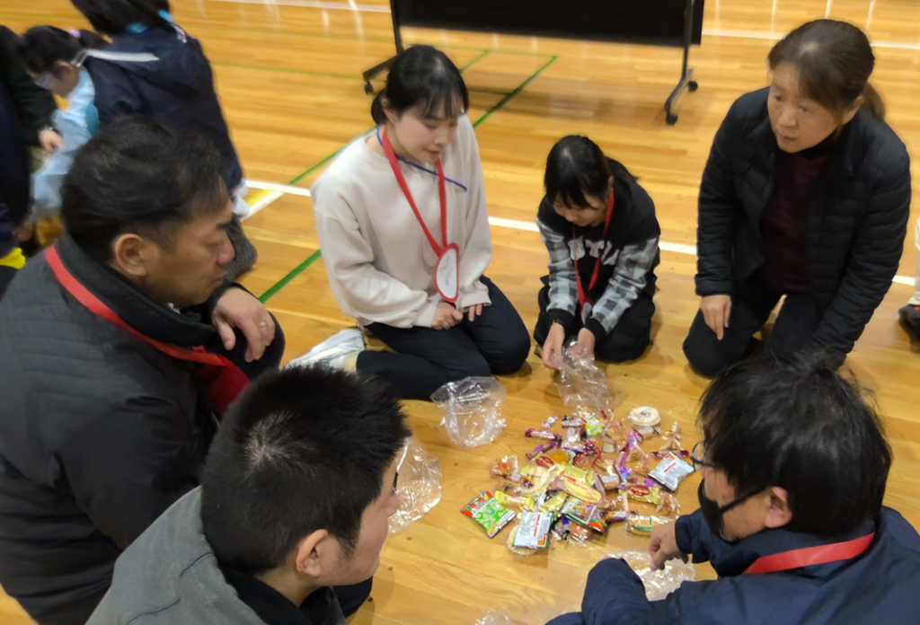 ゲームで集めたお菓子を、みんなで仲良く分けました。