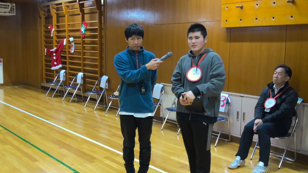 会の後半は、石山選手にフロアバレーボールの体験をしていただき、みんなで盛り上がりました!